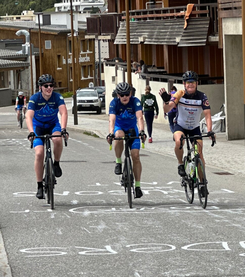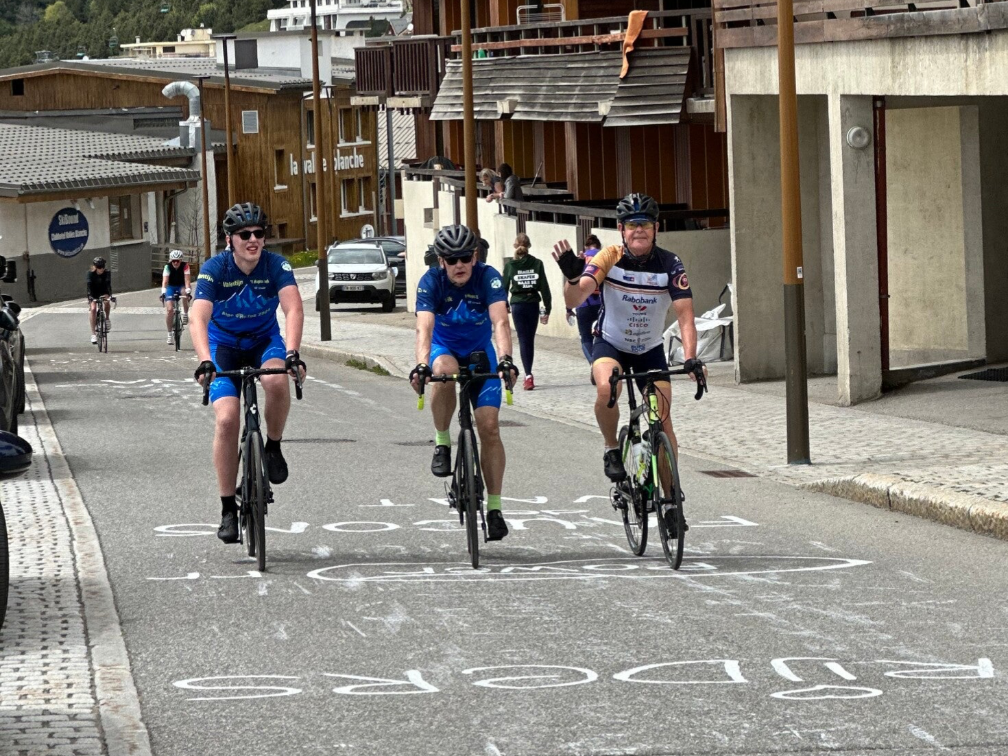 De rit naar boven was goed gegaan, geen ongelukken en onderweg zelfs nog een paar foto’s gemaakt. Ook waren ze door een Franse fotograaf gefotografeerd langs de route en die foto’s kunnen we morgen terug zien op de website.