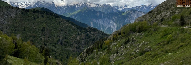 Er stond een enorme rij bij de kassa, dus het geduld werd op de proef gesteld, maar uiteindelijk had iedereen afgerekend en was het tijd voor koffie. Vervolgens weer terug naar de appartementen, want de heren gaan vandaag de hele route op de berg rijden. Snel nog wat eten en omkleden en hup op de fiets. Eerst helemaal naar beneden en vervolgens de klim weer ophoog. Terwijl de heren weg waren, besloten Carla en ik een wandeling te maken en nog even langs Palais des Sports te lopen, want Carla wilde nog graag een koordje voor haar telefoon. Daarna keken we op de telefoon waar de mannen ongeveer waren en zagen dat ze bijna boven waren. Snel naar de weg gelopen waar ze naar zouden aankomen en daar namen we onze posities in met foto- en videocamera om ze binnen te halen.
