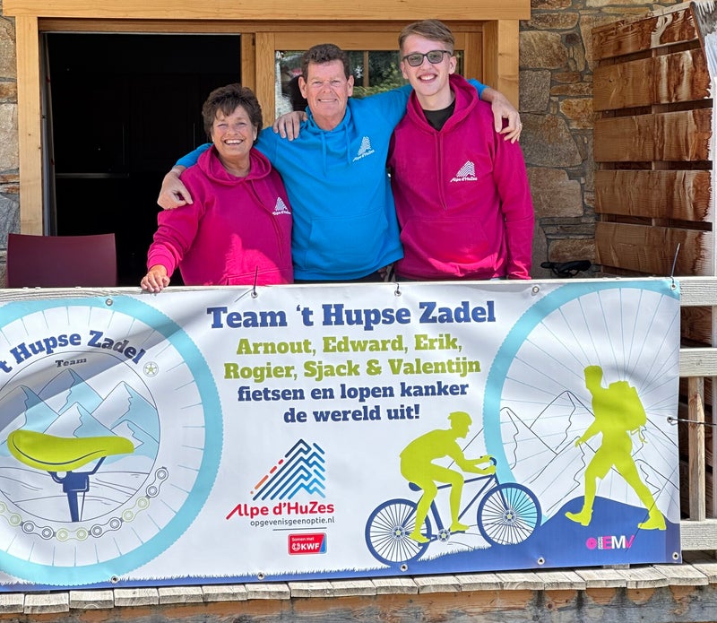 Na een verkwikkende douche en een ontbijtje liepen we samen met Edward en Carla richting Palais des Sports om de startkaarten op te halen en even te shoppen in de Alpe d’HuZes winkel.