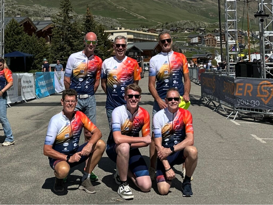 Na de lunchpauze in het appartement moesten de heren zich om 15.45 uur weer melden voor de groepsfoto met alle deelnemers onder de finish. Met ruim 5300 fietsers en lopers stonden ze klaar voor de fotograaf. Een prachtig gezicht! Aangezien iedereen er nu was, appten we naar Rogier of zij er nog waren. Zo konden we een groepsfoto maken met ‘t Hupse Zadel team eveneens onder de finish. Zij waren alweer weg, maar kwamen voor de gelegenheid weer even terug.