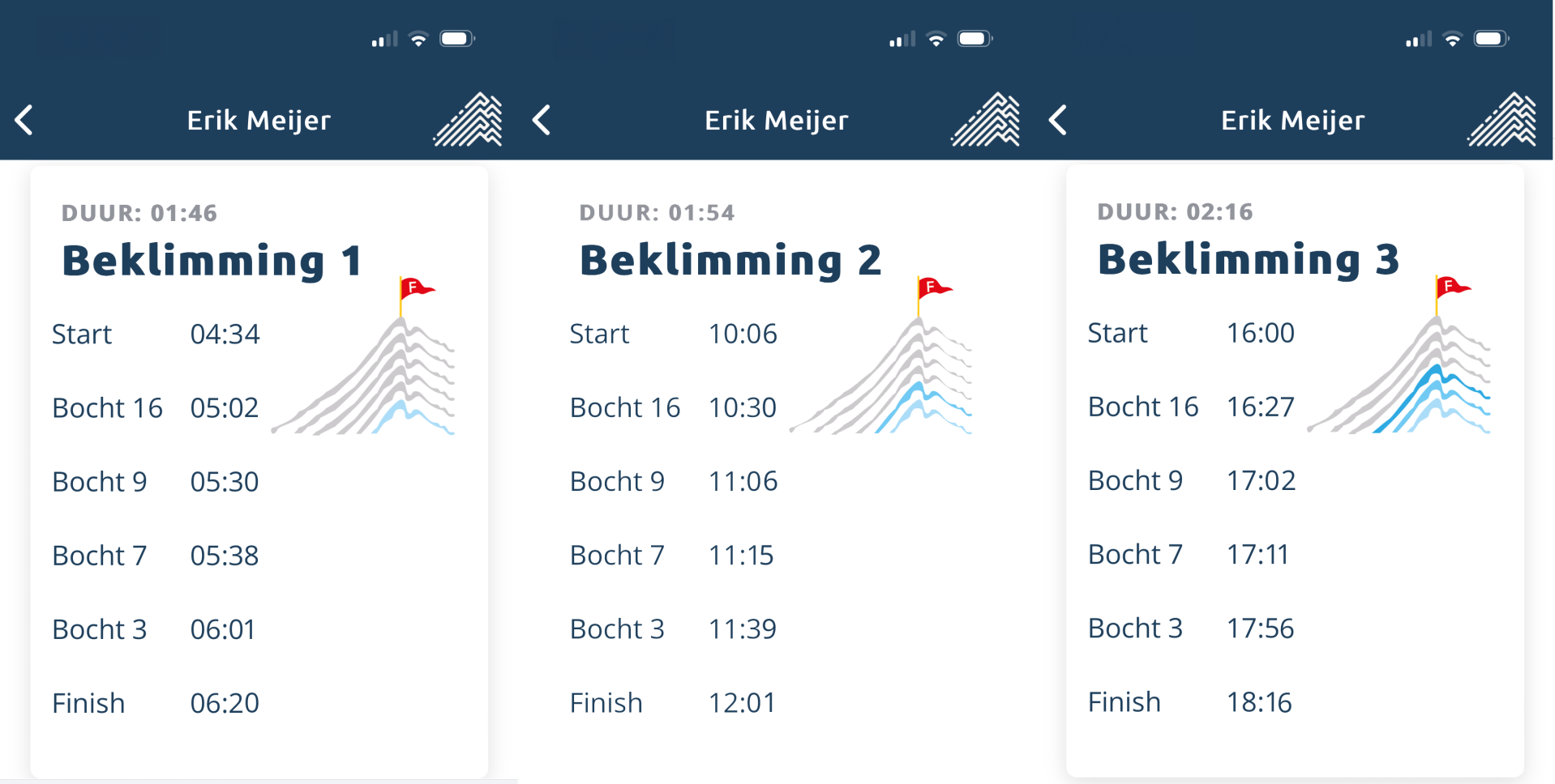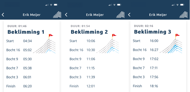 Erik kwam niet lang daarna ook door de finish en had er 1 uur en 46 minuten over gedaan. Hij besloot om eerst even wat rust te pakken en wat te eten. Edward was inmiddels ook boven in 1 uur en 48 minuten en die ging na een snelle kledingwissel en wat eten meteen weer naar beneden.