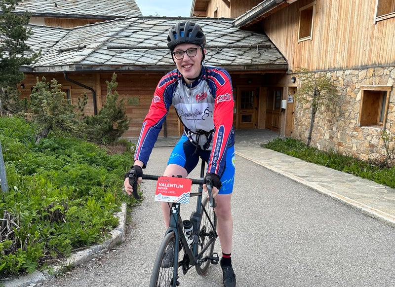 Eindelijk mochten ze beginnen aan de eerste klim. Valentijn kwam als eerste boven en had er 1 uur en 38 minuten overgedaan. Het viel hem mee, dus na wat te hebben gegeten en een schoon fietspak aan, ging hij weer beginnen aan de volgende afdaling.