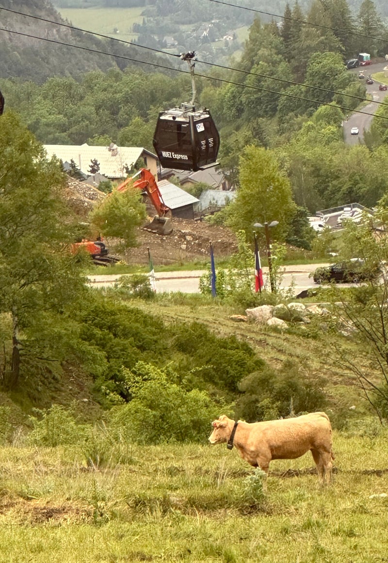 Dan is het alweer tijd om terug te keren naar ons appartement. Er moet ook nog het één en ander ingepakt gaan worden, want morgen vertrekken we weer naar Nederland. Carla is inmiddels ook begonnen en we spreken af, dat we rond 15.30 uur weer verzamelen. Met de auto naar beneden om in Le Bourg-d'Oisans rond te lopen, een beetje te winkelen, een drankje in een lokaal café en aansluitend een hapje te gaan eten.