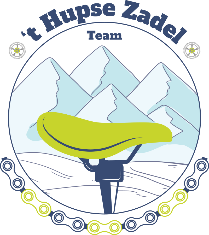 Edward begon uiteindelijk te husselen met alle letters die in "Alpe d'HuZes" zitten inclusief een apostrof (een anagram dus). Dan moet het ook nog wat met fietsen te maken hebben en ineens had hij 't Hupse Zadel voor zich staan. De naam van het team was geboren!