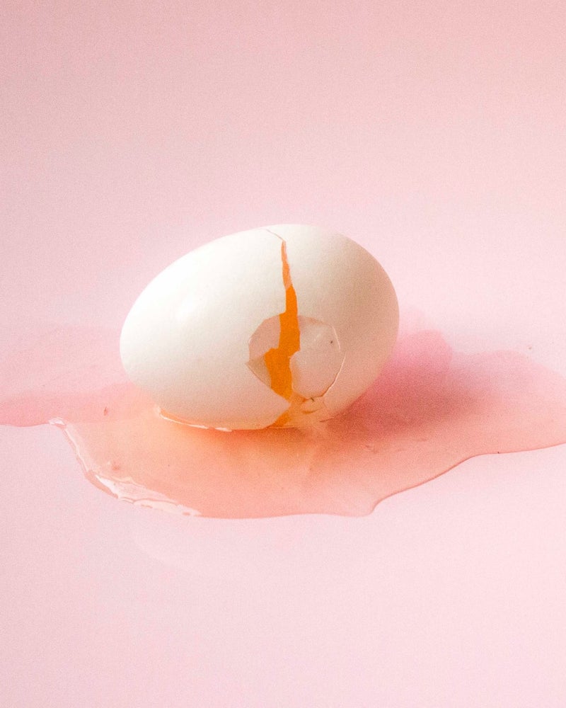 Tik je het ei op een vlakke ondergrond, dan kraak je de schaal zonder dat er stukjes loslaten. Eén krachtige tik is al genoeg. Toch een stukje ei in de schaal terecht gekomen? Vis deze er dan uit met de stukje schaal van het ei.