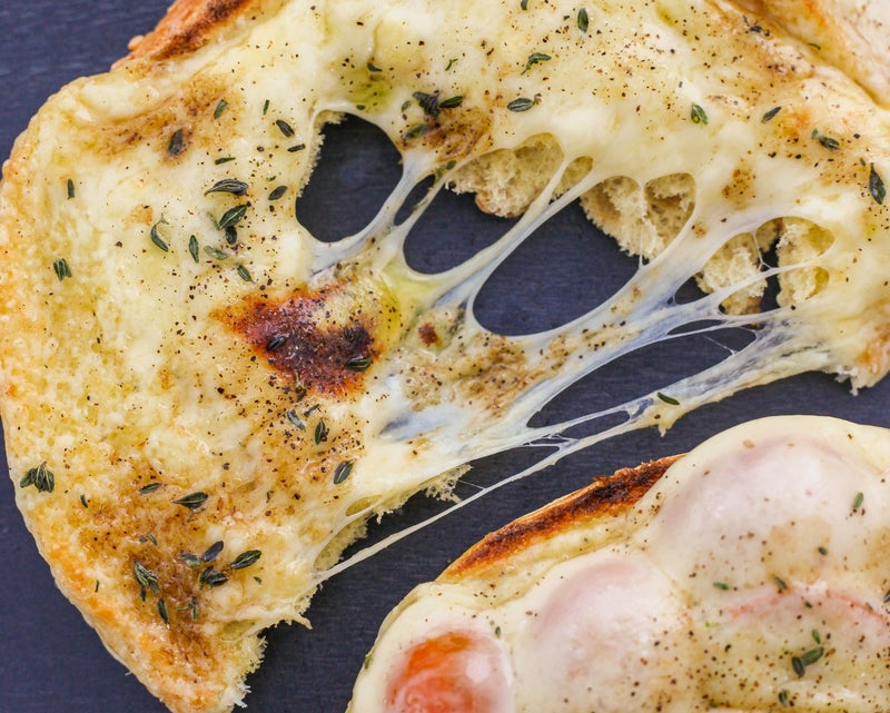 - Door het schuine kaasvlak is de kans op een kaasbrug groter. Een kaasbrug zijn de slierten gesmolten kaas die je krijgt wanneer je de tosti uit elkaar trekt en die mag natuurlijk niet ontbreken.